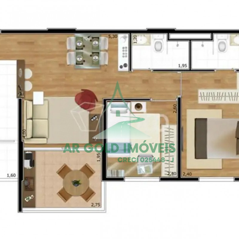 2 quartos, sendo 1 suíte master com box de vidro