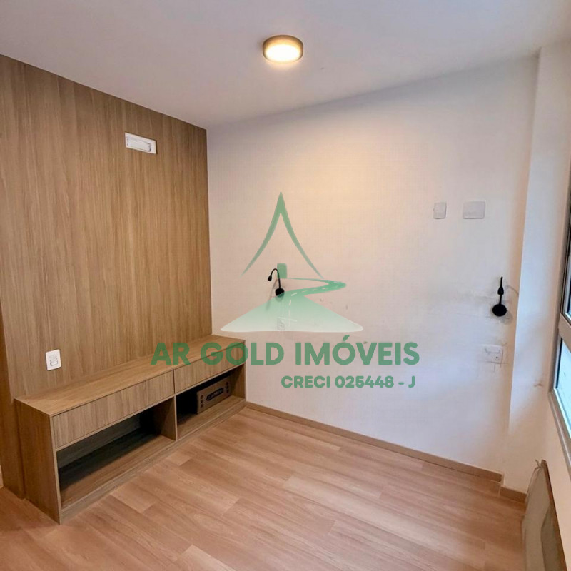 Com 21m² de área útil, o imóvel é compacto, funcional e muito bem aproveitado, com gabinetes instalados em todo o apartamento, pronto para uso.